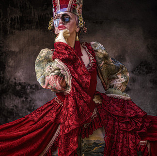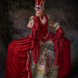 I am always very excited to photograph Mary, because she always bring new ideas and new life into my photography work. This is her take on the Casanova theme this year....a tapestry and lace costume dedicated to Casanova himself, and paired with a plastic transparent for greater fun. The costume is indeed very special, something I have not seen before. Her styles and costumes are always very matured and she sees no need to conform to the usual styles or trends. She takes my portraits to another new level altogether and each year, she raises the standards. A portrait is actually a relationship between the photographer and the subject. Only when there is a good mutual connection will there be a good portrait. Mary is one of those models whose styles and moods connect easily with me, hence our photos have always been quite successful.